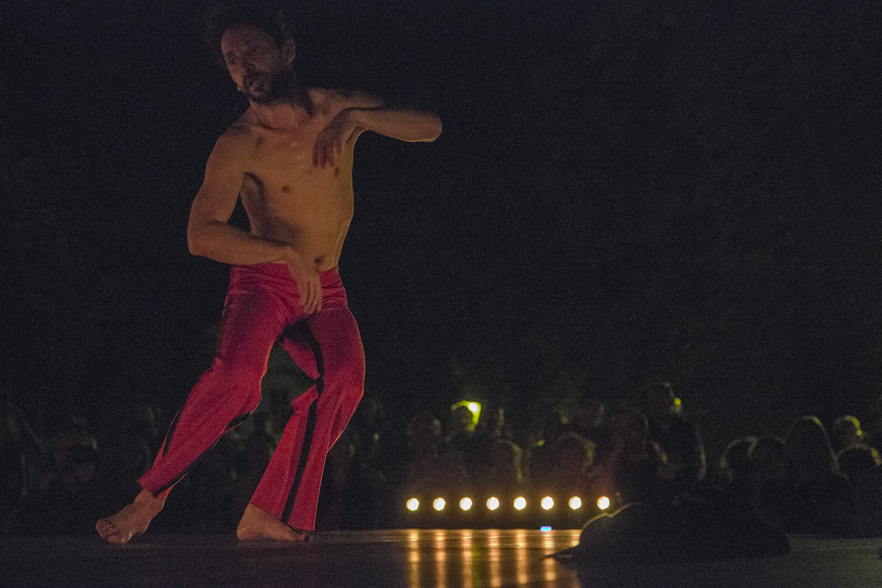 On The Last Step Before Mr Viňarský plays out the game of subjection and resistance to gravity, and of the variation of the possibilities of physical principles. For dreams and desires, gravity is a need, a barrier and inevitability at the same time. Mr Viňarský’s vertical line resists anchoring and finds itself on the brink of being off-axis. It is the runway for take-off, to the core of one’s own personality. The deviations from the body axis and assumption of its control offer a dramatic story of identification and identification of a fixed point. The decision to free oneself is captured in at the instant just prior to the implementation, with the awareness that thing shall never be the same the second time round. The set is made of a light cone, a dancer in red costume embraced by darkness penetrated by jumps and dramatic gestures. Mr Viňarský explored the unique moment, which, though undefined, doesn’t as yet have its history. Nonetheless, it already gives a reason to sense the power of the consequences to follow. The choreographer accelerates the spiral of the motion trajectories in stoppage. He composes breaks in which he attempts to grasp, reverse and control the next step. The options are limited by the laws of physics and out own humanity. The Archimedean fixed point that is to move the Earth disappears in the darkness into which the dancer steps out. The solo is specific given its inventive lighting design. The Czech lighting designer Pavel Kotlík in collaboration with Mr Viňarský create the tightest possible connection of lights and movement where darkness is the anchoring dramaturgical element and the space for illusion as well.