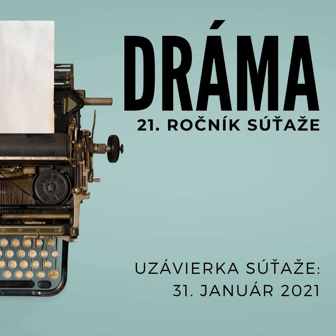 Súťaž DRÁMA už štandardne vyhlasuje Divadelný ústav, Slovenské národné divadlo a Divadlo Jána Palárika v Trnave. Partnerom súťaže je Rozhlas a televízia Slovenska – Rádio DEVÍN. „Súťaž DRÁMA môže inšpirovať autorov napísať hru na tému, ktorú už dlho nosia v sebe. Dáva im možnosť vstúpiť do konfrontácie s inými autormi a v ideálnom prípade im môže pomôcť pri realizácii diela na scéne. Počas ostatných 20 rokov súťaže slovenská divadelná scéna spoznala mnohých autorov, ktorých texty sa inscenujú nielen na Slovensku, ale aj v zahraničí. Navyše si uvedomujeme, že významným prvkom inšpirácie môže byť tohtoročná náročná spoločenská situácia,“ vysvetľuje riaditeľka Divadelného ústavu Vladislava Fekete. Uzávierka 21. ročníka súťaže je 31. januára 2021. Súťaž je anonymná a texty jej finalistov budú publikované v podobe elektronickej knihy.