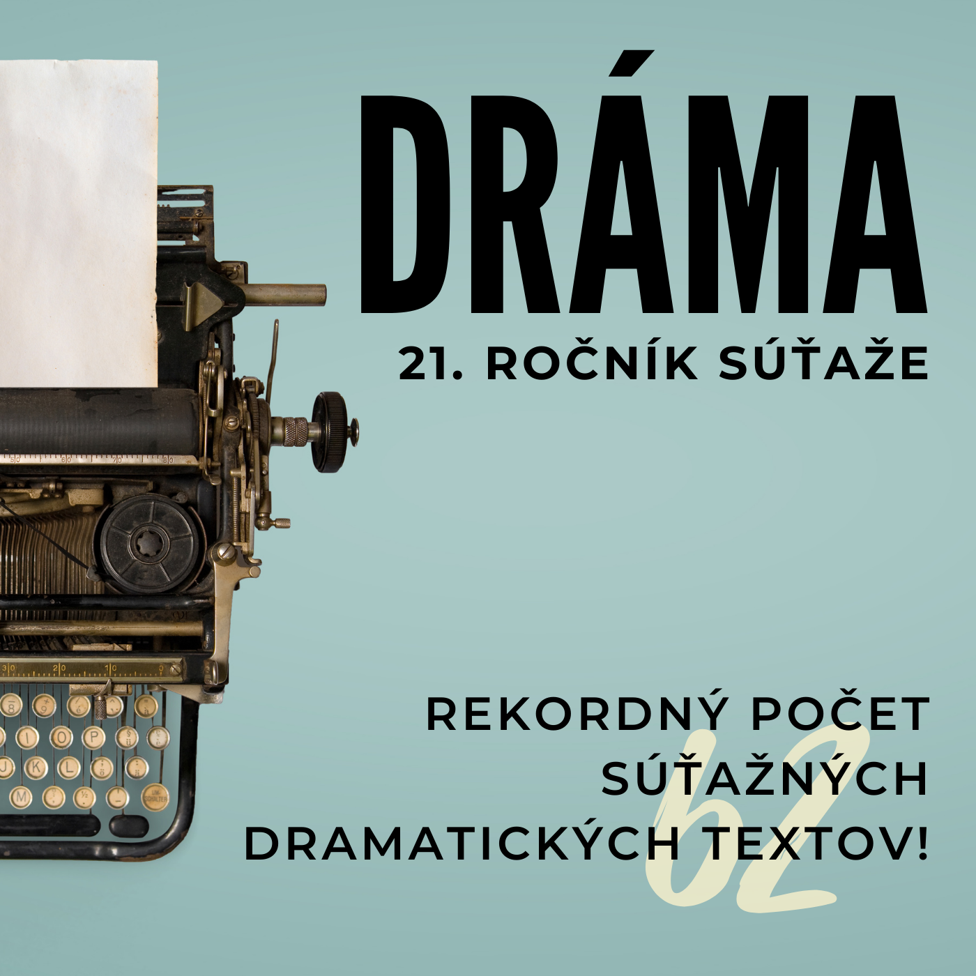 Začiatok tretej dekády súťaže pôvodných divadelných hier v slovenskom a českom jazyku DRÁMA začal naozaj veľkolepo – organizátori do nej prijali rekordný počet súťažných textov. 39 dramatických textov v slovenskom a 25 textov v českom jazyku teraz čaká na posúdenie odbornou porotou.